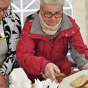 - Jakie przysmaki przygotowałyśmy? Wspaniały, swojski chleb i bułeczki, domowy smalec i ogóreczki kiszone, żurek i bigos, krokiety, pasztet oraz placuszki-pizzerinki z patelni, i to smażone na świeżo! Pyszności - chwalą gospodynie z Jezierc. - Do tego nasze wspaniałe ciasta: od drożdżówki z rabarbarem, po sernik, jabłecznik, ciasto brzoskwiniowe i pleśniak.
